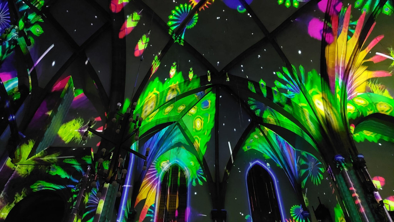 In farbenprächtigen und bildgewaltigen Projektionen zeichnet die immersive Licht- und Videoshow „Genesis“ die Erschaffung der Welt an die Decke und Säulen der Nürnberger Peterskirche. Lesungen aus jüdischer, christlicher und muslimischer Tradition gepaart mit passender Musik lassen diesen Abend für die Besucherinnen und Besucher zu einem besonderen interreligiösen Erlebnis werden.