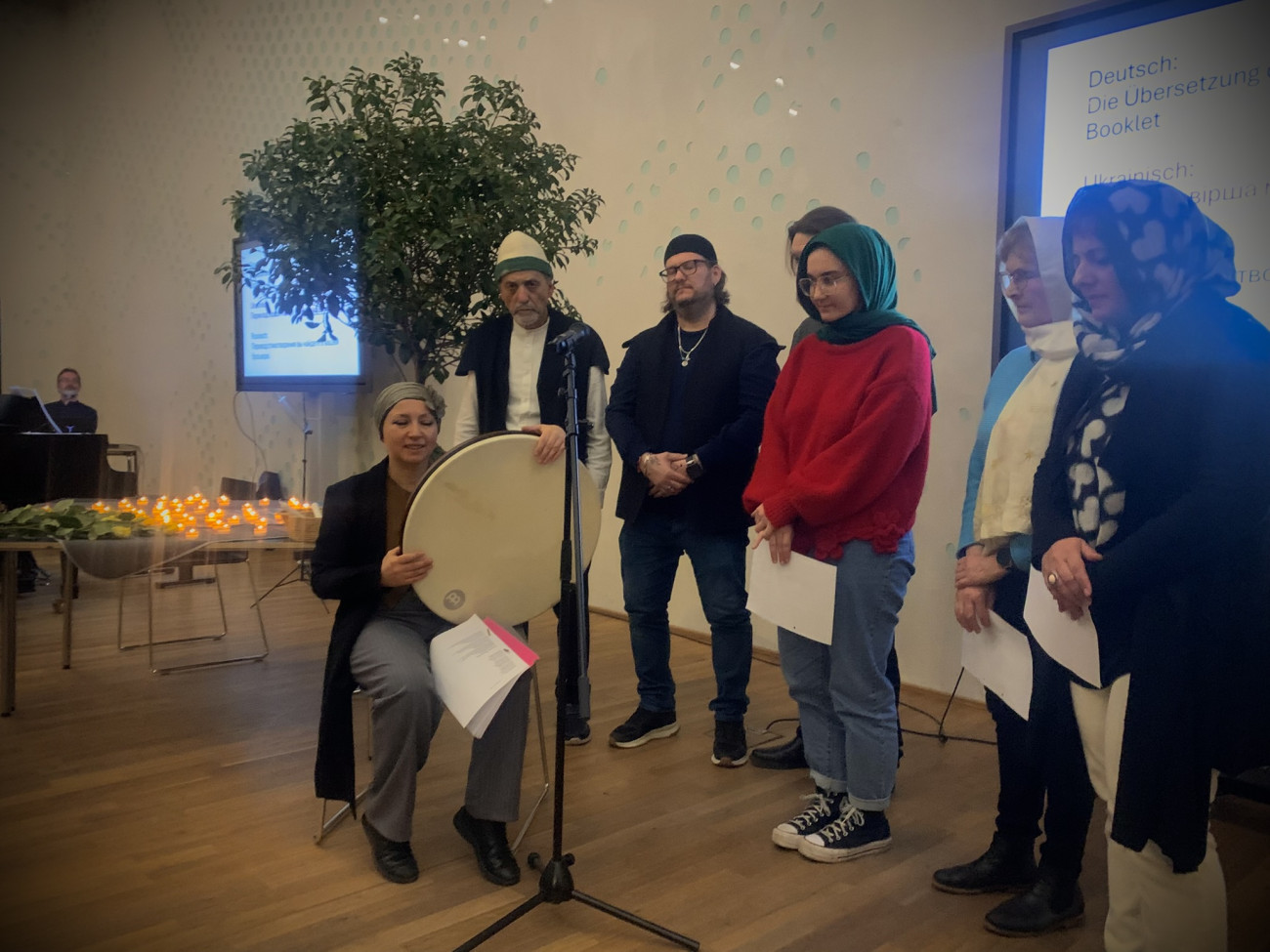 Aus Anlass des traurigen 4. Jahrestags des russischen Angriffs auf die Ukraine konnten wir als BRÜCKE-KÖPRÜ an der Gestaltung eines multireligiösen Friedensgebets mitwirken, das am 24.02.2026 in Zusammenarbeit mit der SinN-Stiftung (Dr. Sabine Arnold), Kirchenvertreter*innen aus der Ukraine und Mitgliedsgemeinschaften des Rats der Religionen-Nürnberg im Sofiensaal (Lorenzer Pfarrhof)stattfand.