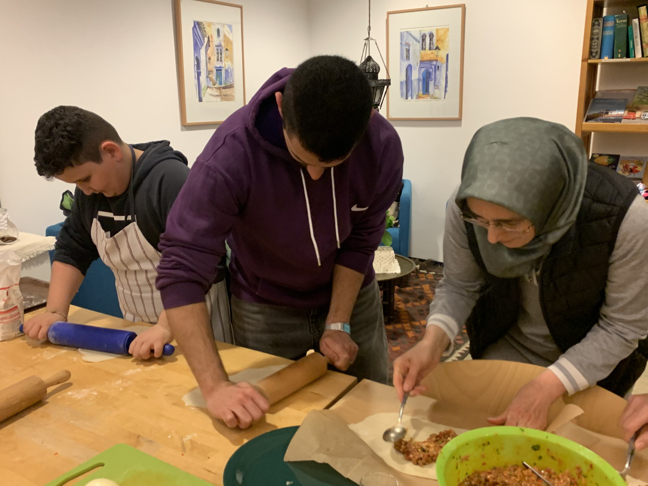 Am 26.März ging es los: Kadir und Dilek aus Erlangen zeigten uns, wie man Lahmacun und Baklava bäckt. Ein Fest für alle Sinne, mit Begegnungen zwischen jung und alt, Süßem und Herzhaftem, Raum auch zum Deutschsprechen und ein wenig auch zum Türkischlernen. Herzlichen Dank vor allem an unsere beiden leidenschaftlichen Vorköche und alle Mitschnippler, Teigausroller und Mit-Genießer*innen!